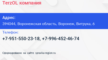 TerzOL, компания по адресу 394044, Воронежская область, Воронеж, Витрука, 6 в дальнейшем Организация, размещена в следующих категориях: