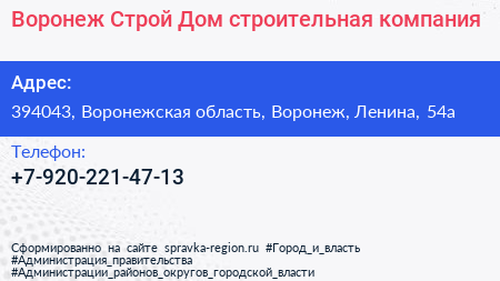 Воронеж Строй Дом, строительная компания по адресу 394043, Воронежская область, Воронеж, Ленина, 54а в дальнейшем Организация, размещена в следующих категориях: