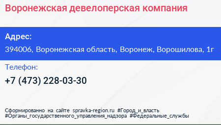 Воронежская девелоперская компания по адресу 394006, Воронежская область, Воронеж, Ворошилова, 1г в дальнейшем Организация, размещена в следующих категориях: