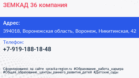 ЗЕМКАД 36, компания по адресу 394018, Воронежская область, Воронеж, Никитинская, 42 в дальнейшем Организация, размещена в следующих категориях: