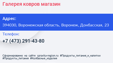 Галерея ковров, магазин по адресу 394030, Воронежская область, Воронеж, Донбасская, 23 в дальнейшем Организация, размещена в следующих категориях: