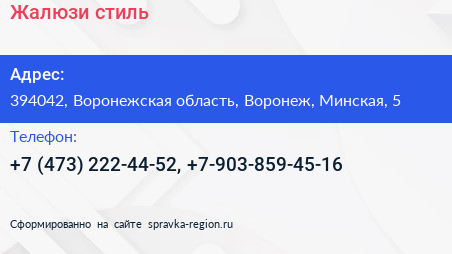 Жалюзи-стиль по адресу 394042, Воронежская область, Воронеж, Минская, 5 в дальнейшем Организация, размещена в следующих категориях: