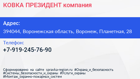 КОВКА-ПРЕЗИДЕНТ, компания по адресу 394044, Воронежская область, Воронеж, Планетная, 28 в дальнейшем Организация, размещена в следующих категориях: