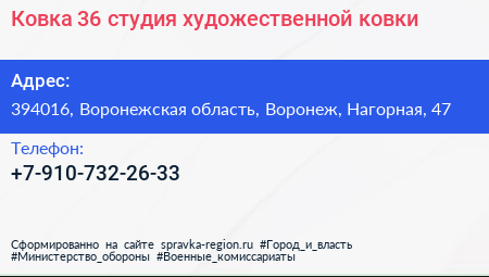 Ковка 36, студия художественной ковки по адресу 394016, Воронежская область, Воронеж, Нагорная, 47 в дальнейшем Организация, размещена в следующих категориях: