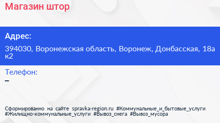 Магазин штор по адресу 394030, Воронежская область, Воронеж, Донбасская, 18а к2 в дальнейшем Организация, размещена в следующих категориях:
