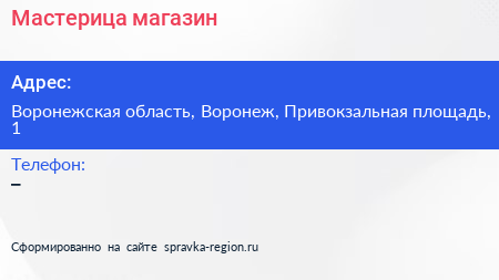 Мастерица, магазин по адресу Воронежская область, Воронеж, Привокзальная площадь, 1 в дальнейшем Организация, размещена в следующих категориях: