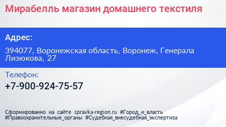 Мирабелль, магазин домашнего текстиля по адресу 394077, Воронежская область, Воронеж, Генерала Лизюкова, 27 в дальнейшем Организация, размещена в следующих категориях: