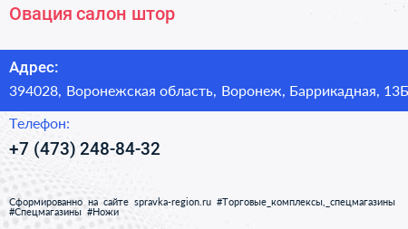 Овация, салон штор по адресу 394028, Воронежская область, Воронеж, Баррикадная, 13Б в дальнейшем Организация, размещена в следующих категориях: