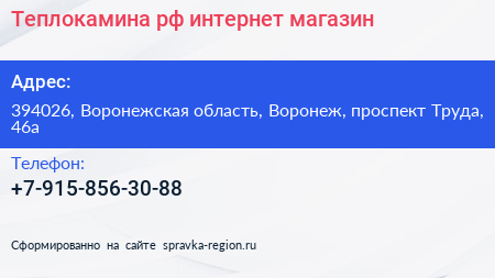 Теплокамина.рф, интернет-магазин по адресу 394026, Воронежская область, Воронеж, проспект Труда, 46а в дальнейшем Организация, размещена в следующих категориях: