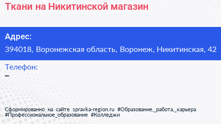 Ткани на Никитинской, магазин по адресу 394018, Воронежская область, Воронеж, Никитинская, 42 в дальнейшем Организация, размещена в следующих категориях: