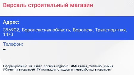 Версаль, строительный магазин по адресу 396902, Воронежская область, Воронеж, Транспортная, 14/3 в дальнейшем Организация, размещена в следующих категориях: