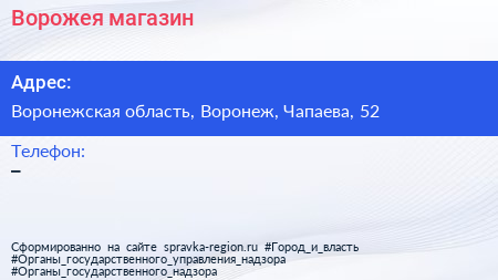 Ворожея, магазин по адресу Воронежская область, Воронеж, Чапаева, 52 в дальнейшем Организация, размещена в следующих категориях: