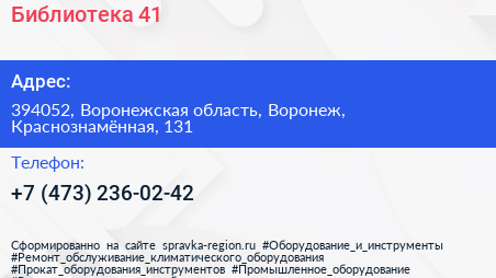 Библиотека №41 по адресу 394052, Воронежская область, Воронеж, Краснознамённая, 131 в дальнейшем Организация, размещена в следующих категориях: