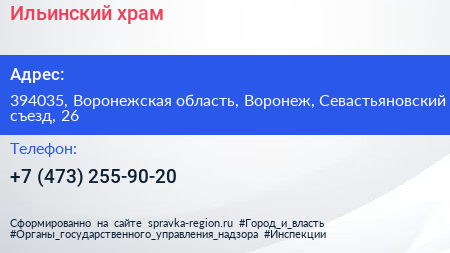 Ильинский храм по адресу 394035, Воронежская область, Воронеж, Севастьяновский съезд, 26 в дальнейшем Организация, размещена в следующих категориях: