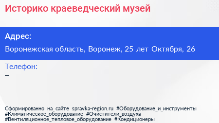 Историко-краеведческий музей по адресу Воронежская область, Воронеж, 25 лет Октября, 26 в дальнейшем Организация, размещена в следующих категориях: