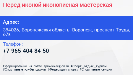 Перед иконой, иконописная мастерская по адресу 394026, Воронежская область, Воронеж, проспект Труда, 67в в дальнейшем Организация, размещена в следующих категориях: