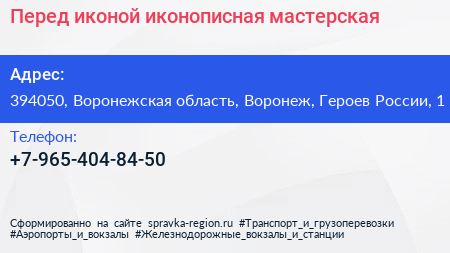 Перед иконой, иконописная мастерская по адресу 394050, Воронежская область, Воронеж, Героев России, 1 в дальнейшем Организация, размещена в следующих категориях: