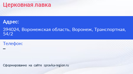 Церковная лавка по адресу 394024, Воронежская область, Воронеж, Транспортная, 54/2 в дальнейшем Организация, размещена в следующих категориях: