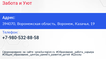 Забота и Уют по адресу 394070, Воронежская область, Воронеж, Казачья, 19 в дальнейшем Организация, размещена в следующих категориях: