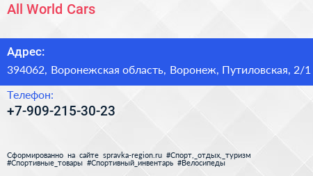 All-World-Cars по адресу 394062, Воронежская область, Воронеж, Путиловская, 2/1 в дальнейшем Организация, размещена в следующих категориях: