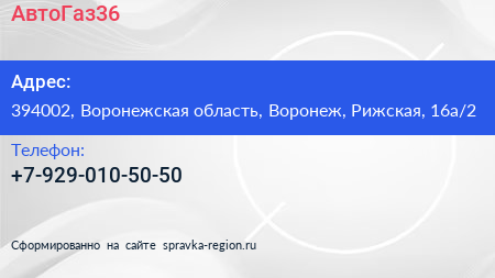 АвтоГаз36 по адресу 394002, Воронежская область, Воронеж, Рижская, 16а/2 в дальнейшем Организация, размещена в следующих категориях: