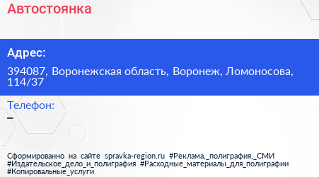 Автостоянка по адресу 394087, Воронежская область, Воронеж, Ломоносова, 114/37 в дальнейшем Организация, размещена в следующих категориях: