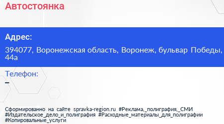 Автостоянка по адресу 394077, Воронежская область, Воронеж, бульвар Победы, 44а в дальнейшем Организация, размещена в следующих категориях: