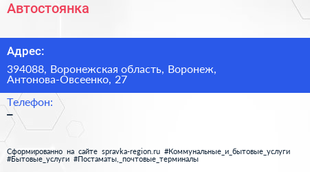 Автостоянка по адресу 394088, Воронежская область, Воронеж, Антонова-Овсеенко, 27 в дальнейшем Организация, размещена в следующих категориях: