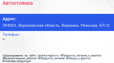 Автостоянка по адресу 394021, Воронежская область, Воронеж, Минская, 67г/2 в дальнейшем Организация, размещена в следующих категориях: