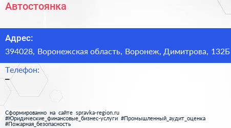 Автостоянка по адресу 394028, Воронежская область, Воронеж, Димитрова, 132Б в дальнейшем Организация, размещена в следующих категориях: