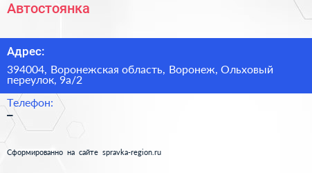 Автостоянка по адресу 394004, Воронежская область, Воронеж, Ольховый переулок, 9а/2 в дальнейшем Организация, размещена в следующих категориях:
