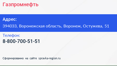 Газпромнефть по адресу 394033, Воронежская область, Воронеж, Остужева, 51 в дальнейшем Организация, размещена в следующих категориях: