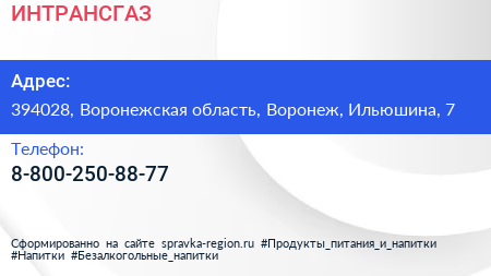 ИНТРАНСГАЗ по адресу 394028, Воронежская область, Воронеж, Ильюшина, 7 в дальнейшем Организация, размещена в следующих категориях: