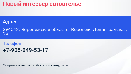 Новый интерьер, автоателье по адресу 394042, Воронежская область, Воронеж, Ленинградская, 2а в дальнейшем Организация, размещена в следующих категориях: