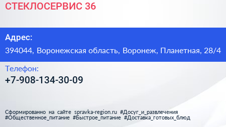 СТЕКЛОСЕРВИС-36 по адресу 394044, Воронежская область, Воронеж, Планетная, 28/4 в дальнейшем Организация, размещена в следующих категориях: