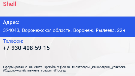 Shell по адресу 394043, Воронежская область, Воронеж, Рылеева, 22н в дальнейшем Организация, размещена в следующих категориях: