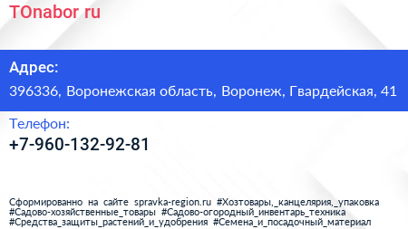 TOnabor.ru по адресу 396336, Воронежская область, Воронеж, Гвардейская, 41 в дальнейшем Организация, размещена в следующих категориях: