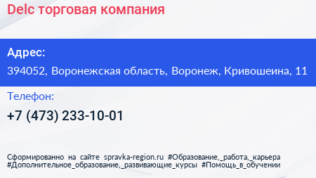 Delc, торговая компания по адресу 394052, Воронежская область, Воронеж, Кривошеина, 11 в дальнейшем Организация, размещена в следующих категориях: