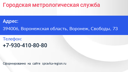 Городская метрологическая служба по адресу 394006, Воронежская область, Воронеж, Свободы, 73 в дальнейшем Организация, размещена в следующих категориях:
