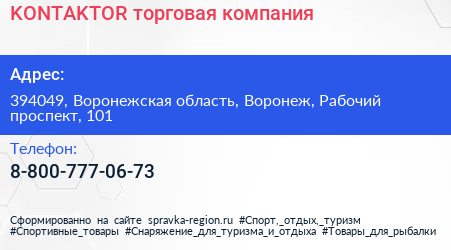 KONTAKTOR, торговая компания по адресу 394049, Воронежская область, Воронеж, Рабочий проспект, 101 в дальнейшем Организация, размещена в следующих категориях:
