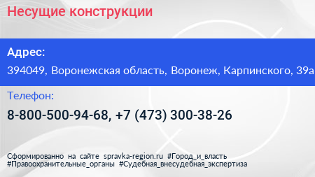 Несущие конструкции по адресу 394049, Воронежская область, Воронеж, Карпинского, 39а в дальнейшем Организация, размещена в следующих категориях: