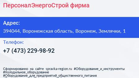 ПерсоналЭнергоСтрой, фирма по адресу 394044, Воронежская область, Воронеж, Землячки, 1 в дальнейшем Организация, размещена в следующих категориях: