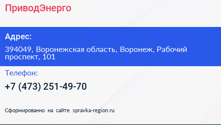 ПриводЭнерго по адресу 394049, Воронежская область, Воронеж, Рабочий проспект, 101 в дальнейшем Организация, размещена в следующих категориях: