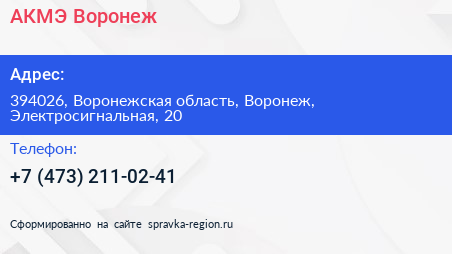 АКМЭ Воронеж по адресу 394026, Воронежская область, Воронеж, Электросигнальная, 20 в дальнейшем Организация, размещена в следующих категориях: