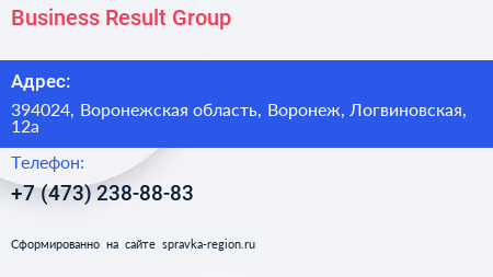 Business Result Group по адресу 394024, Воронежская область, Воронеж, Логвиновская, 12а в дальнейшем Организация, размещена в следующих категориях: