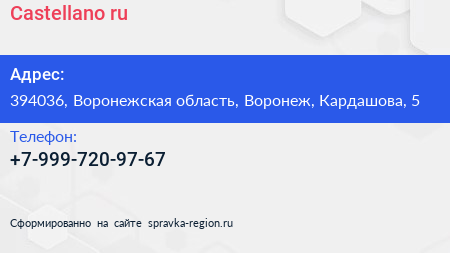Castellano.ru по адресу 394036, Воронежская область, Воронеж, Кардашова, 5 в дальнейшем Организация, размещена в следующих категориях:
