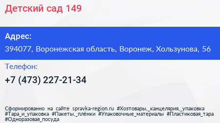 Детский сад №149 по адресу 394077, Воронежская область, Воронеж, Хользунова, 56 в дальнейшем Организация, размещена в следующих категориях: