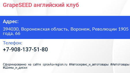 GrapeSEED, английский клуб по адресу 394030, Воронежская область, Воронеж, Революции 1905 года, 66 в дальнейшем Организация, размещена в следующих категориях: