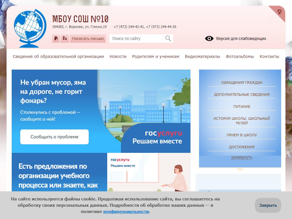 Средняя общеобразовательная школа №10 по адресу 394083, Воронежская область, Воронеж, Глинки, 19 в дальнейшем Организация, размещена в следующих категориях: