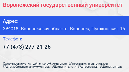 Воронежский государственный университет по адресу 394018, Воронежская область, Воронеж, Пушкинская, 16 в дальнейшем Организация, размещена в следующих категориях: